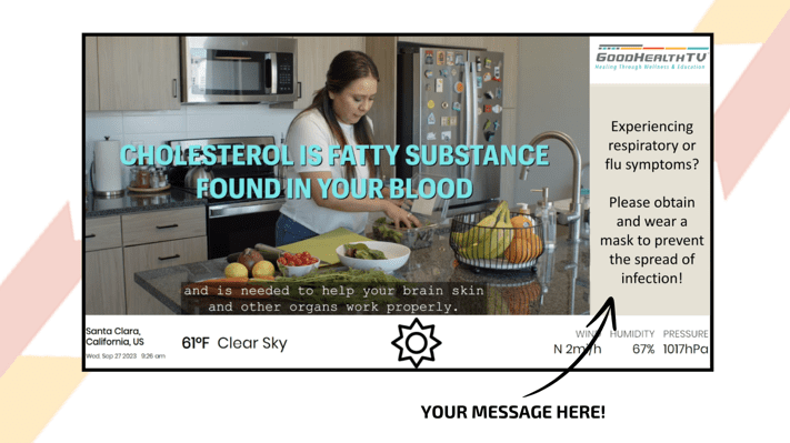 GoodHealthTV® airs original and sponsored programming on a 90-minute loop throughout the day, blending entertainment with education to keep visitors engaged as they learn and stay informed. By leveraging an “edutainment” model, it effectively delivers point-of-care messaging that resonates and empowers viewers.